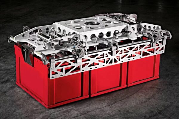 Der Anguss kann direkt im Prozess abgeschnitten werden oder aber in einer separaten Station. Idealerweise verwendet man ein Grundgestell mit verschiedenen Wechselaufsätzen.